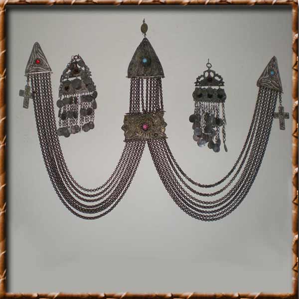 Συρματερό κόσμημα πλάτης ή στήθους. Αποτελείται απο το μεγάλο τρίγωνο επάνω στο κέντρο απο το οποίο ξεχύνονται πολλές αλυσίδες και ενώνουν τα τοκάδια. Στις δύο μεριές έχουμε τα κοσμήματα προσώπου (μαγουλοκοτάρια) τα οποία είναι ασημένια και συμπεριλαμβάνονται στην τιμή.