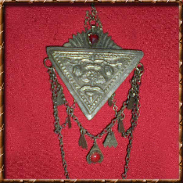 Τρίγωνο φυλαχτό φτιαγμένο στο χέρι απο καθαρό ασήμι. Πάνω του διακρίνουμε φιγούρες σκαλιστές Συριακής προέλευσης. Αποτελείται απο αρκετά μεγάλη αλυσίδα, οχτάρα και κολλητή. Φοριέται στο στήθος σε πολλές περιοχές της Ελλάδος.