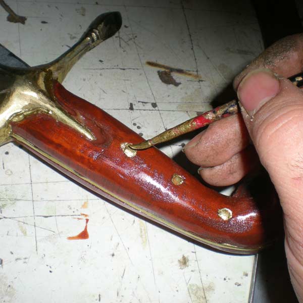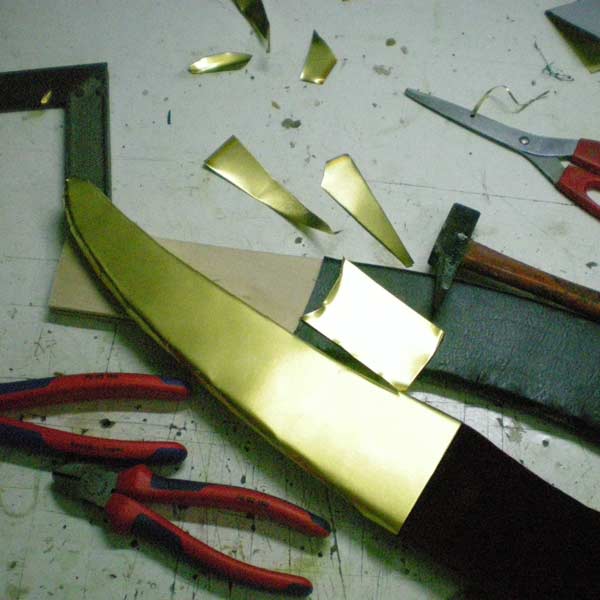 Πιστό αντίγραφο από ασημένιο ηπειρώτικο γιαταγάνι. Το θηκάρι είναι απο ξύλο δρύς αποφλοιωμένο και ντυμένο με κράμα ασημιού-χαλκού. Το μανίκι είναι απο ξύλο λευκής φλαμουριάς και η λάμα είναι απο σκληρό χάλυβα. Στο σκάλισμα απεικονίζονται φιγούρες απο λέπια, λάφυρα, λουλούδια, λάβαρα και ο Αη Γιώργης. Οι διαστάσεις φορεμένο στη θήκη είναι 75cm μήκος και 5cm πλάτος