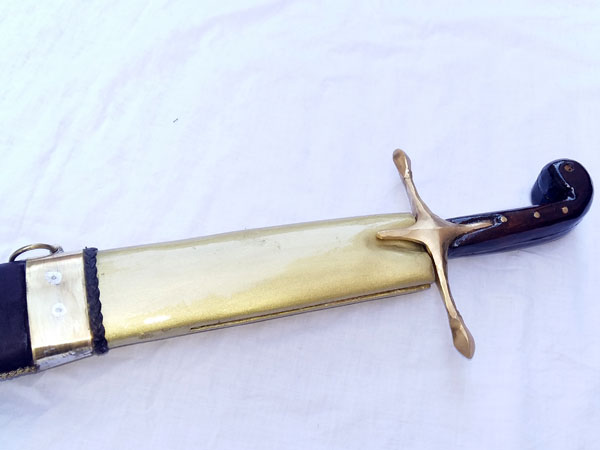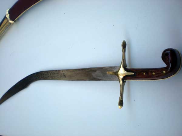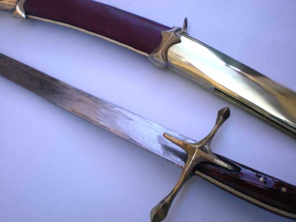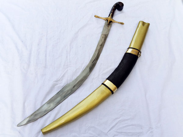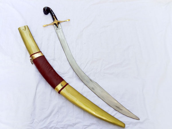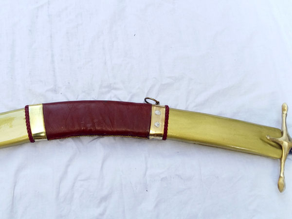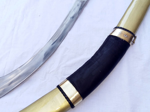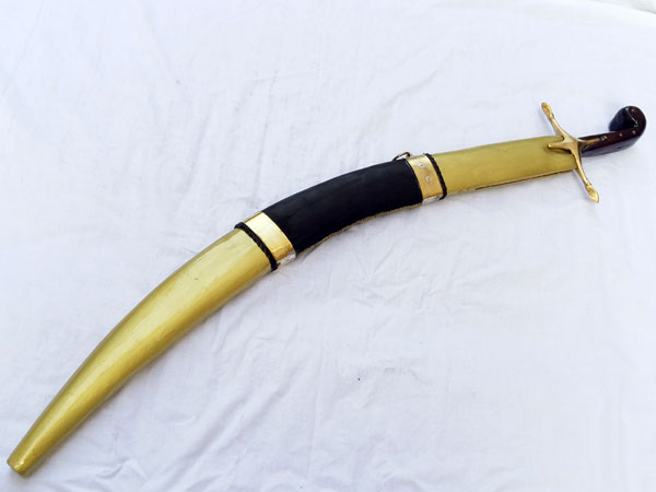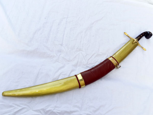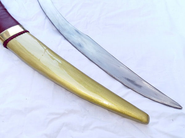 Αντίγραφο από πάλα (σπαθί). Φτιαγμένη από ανοξείδωτο μέταλλο. Το θηκάρι είναι ντυμένο από δέρμα και βαμμένο με ειδικό χρυσό χρώμα. Είναι διαθέσιμο σε δύο χρώματα κόκκινο και μαύρο. Επικοινωνήστε μαζί μας για τα διαθέσιμα χρώματα.